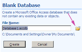 Access prompts you for the location to save the database