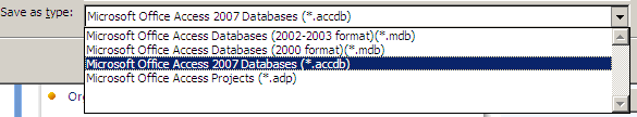 Note that you can save the database in various Access formats.