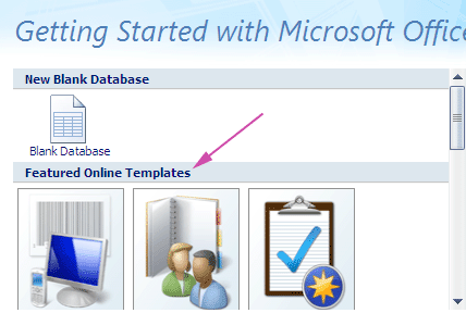 Click on Local Templates on the left side of the Access window