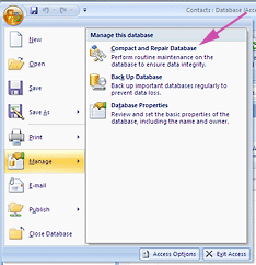 Office Button/Manage/Compact and Repair Database