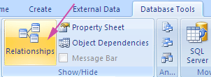 Click on the Relationships button of the Database Tools ribbon.