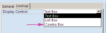 Choose Combo Box for the Display Control property.