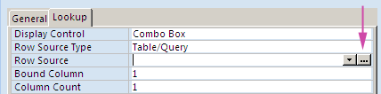 Leave Row Source Type as Table/Query (because we will be getting the information for the ConsumerID field in the Animals table from a table - the Consumers table). Click on the ellipses button in the Row Source property.