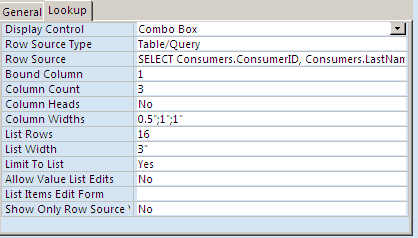 Swith the table to datasheet view and save the changes. Observe the drop-down box for ConsumerID.